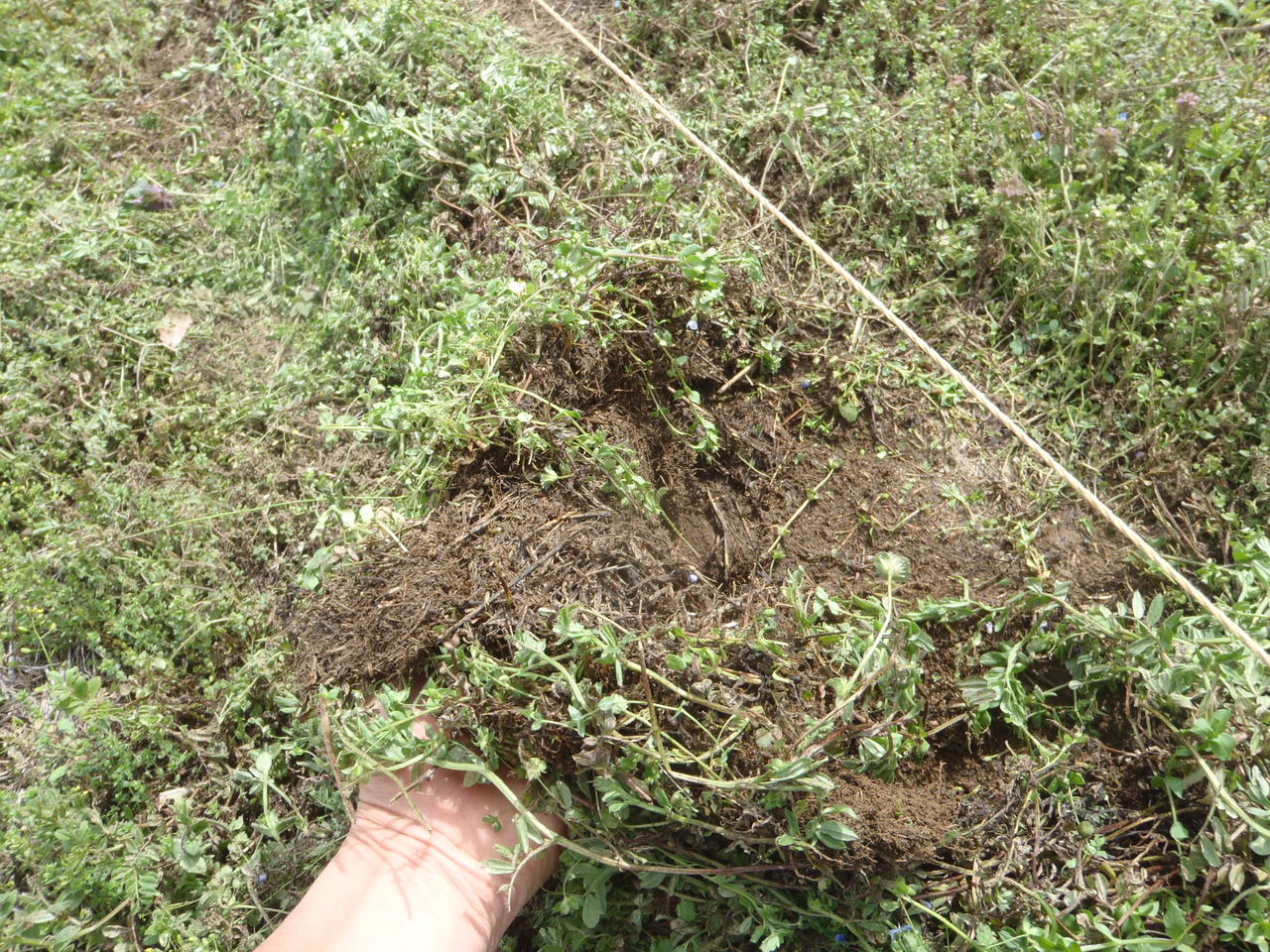 一般的には、トラクターで全面耕運するだろうし、草刈りの場合は地際で全て刈り取るが・・・。