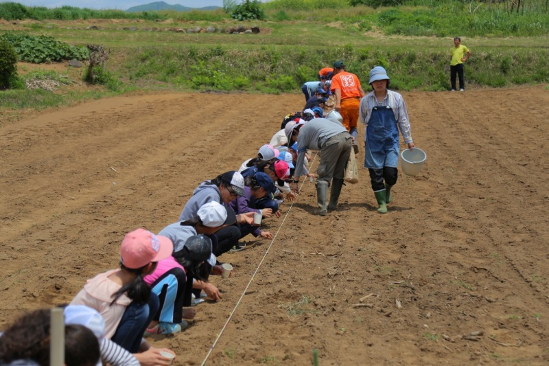 自分の担当は、畑での種まき。